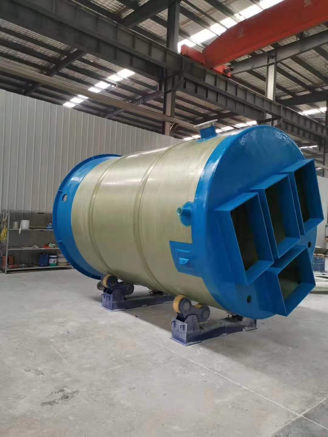 一体化泵站筒体生产过程... 一体化泵站筒体的特点: 1、耐热,抗冻、温度适应性强,一体化提升泵站的玻璃钢筒体可在-40℃-80℃的温度下正常运行,特殊树脂配比的筒体可在高达110℃的高温下工作,冰冻介质下筒体不裂。 2、重量轻,易安装,玻璃钢筒体比...