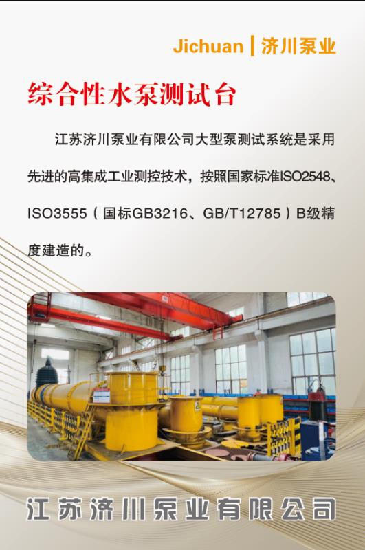 推动先进装备制造业 精益求精... 江苏JXF吉祥坊泵业有限公司大型泵测试系统是采用先进的高集成工业测控技术,按照国家标准ISO2548、ISO3555(国标GB3216、GB/T12785)B级精度建造的。 测试中心拥有长50米...